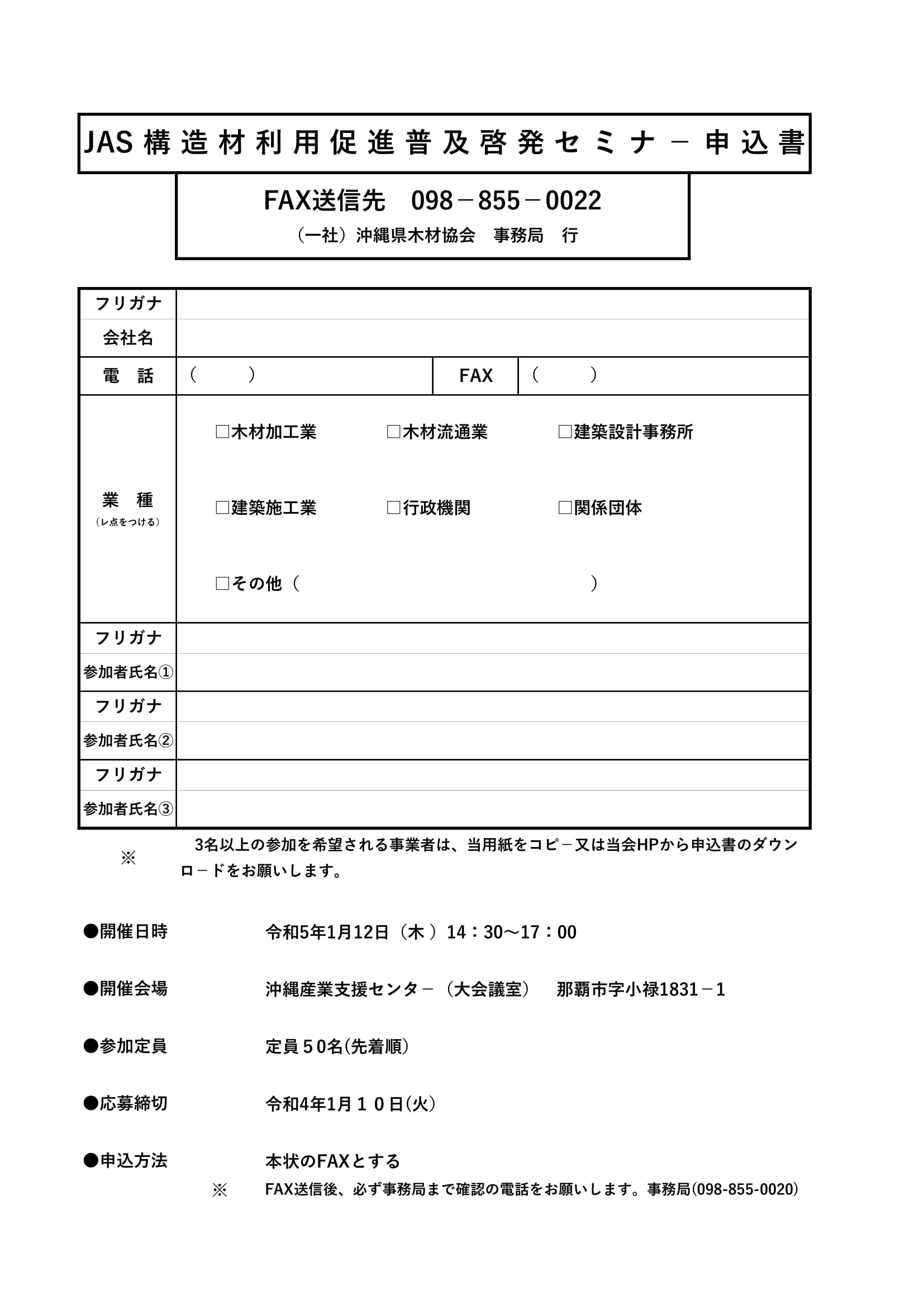 ●申込先 : 一般社団法人 沖縄県木材協会